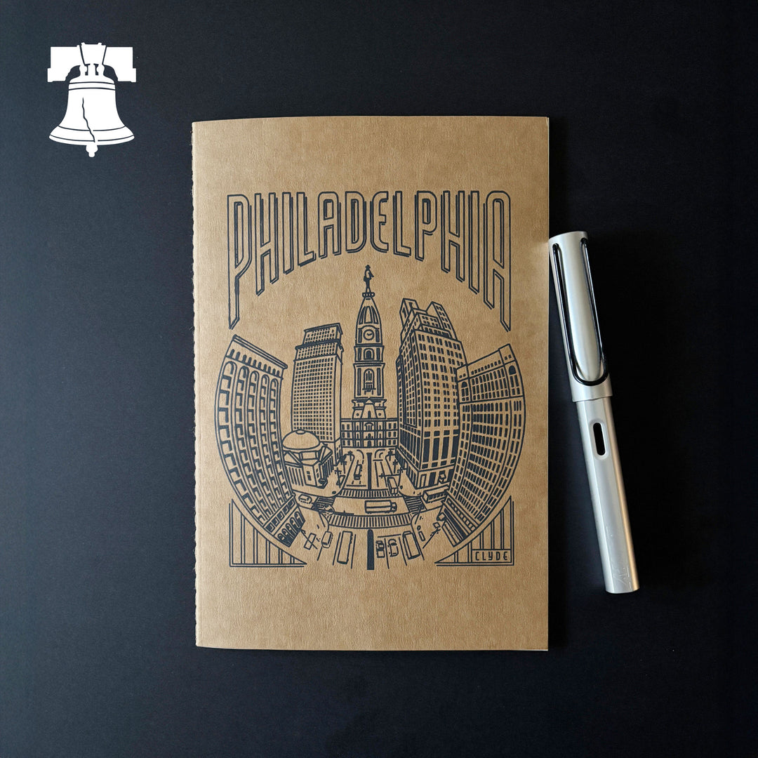 Philadelphia Skyline Hand-Printed Kraft Notebook – A5 Stitch-Bound